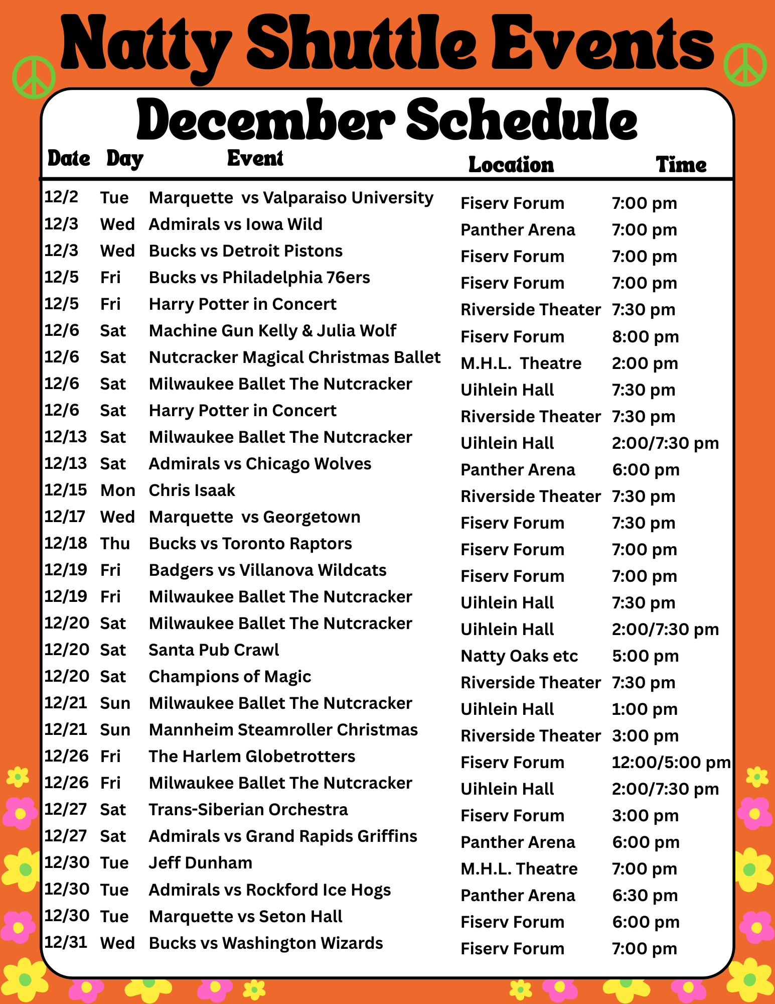 If you are looking for a shuttle to your private party please email us at shuttles@nattyoaks.com